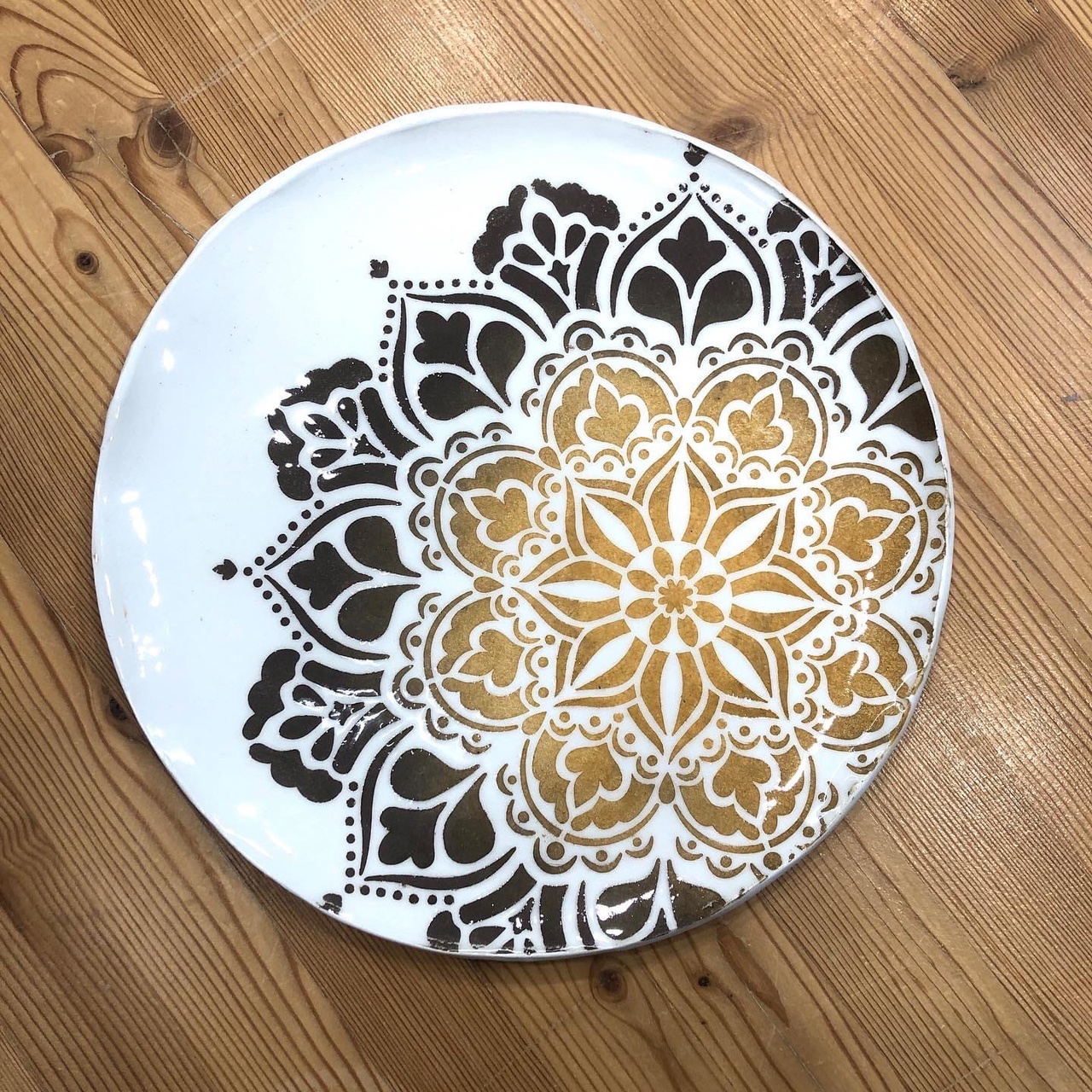 На занятии вы познакомитесь с работой в технике пласта — раскатаете и подготовите глину к превращению в тарелку. После чего выберете понравившийся трафарет и приступите к раскрашиванию специальными глиняными красками — ангобами. За одно занятие вы сделаете всю творческую часть работы, а за нами останется техническая — правильно высушить, обжечь, покрыть защитным слоем глазури для водонепроницаемости и ещё раз обжечь.